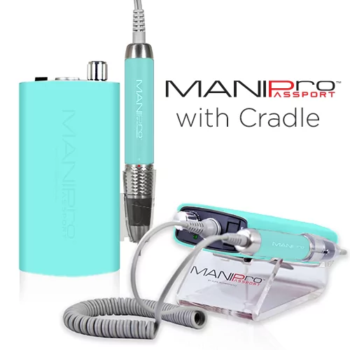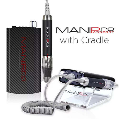 This powerful, all new, portable/or table top electric nail file has been designed for the Professional Nail/Medical Technicians who demand power and portability. The Passport features a light weight battery powered, or Classic plug in style *Acetone Resistant Finish* control box. This unit can provide anywhere from 8 to 10 hours of use per charge in either 110v or 220v. The MANIPro Passport comes complete with a stainless steel belt clip and a plastic handpiece holster which can snap on either side of the control box.